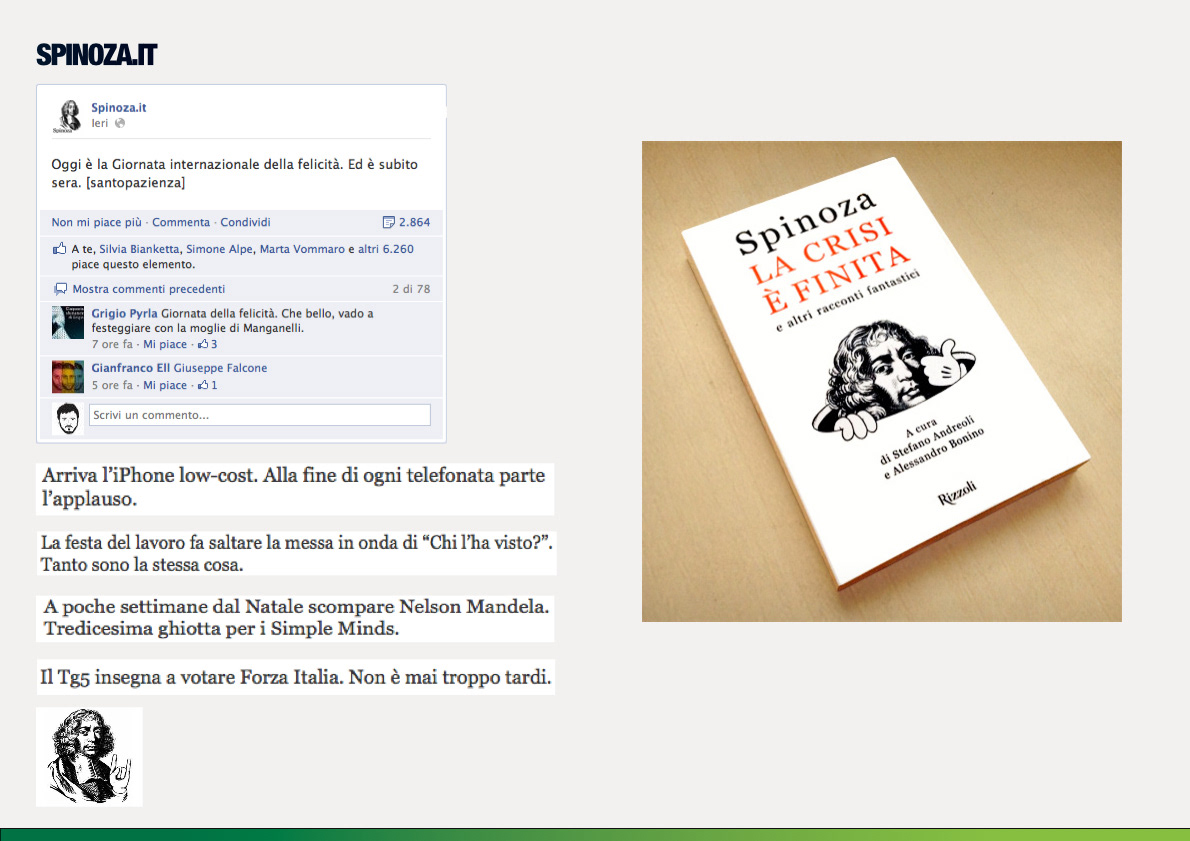 Spinoza.it is one of the most funny and famous satirical pages in Italy. Here some of my lines